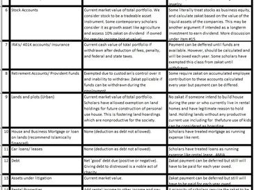 This chart summarizes the zakat on different asset or income classes, including newer asset classes like industries, stocks, 401k, pension/ provident funds, etc.